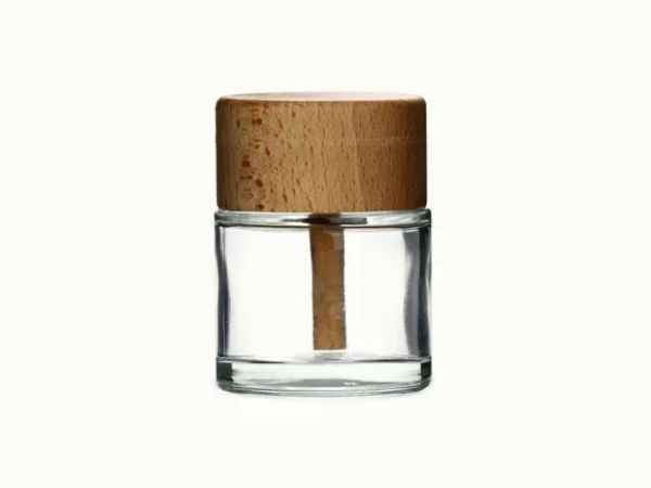 - الميزة : جسم زجاجي مستدير ، غطاء خشبي ، سعة 50 مل.