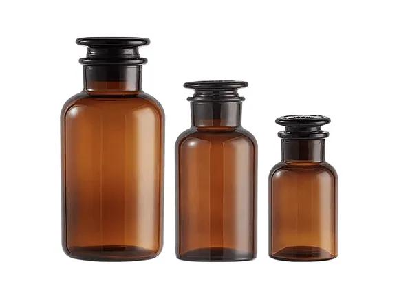 Crafted in amber-hued glass, these bottles evoke a vintage apothecary aesthetic that appeals to those with an eye for style. The deep amber shade not only adds a sophisticated touch but also provides practical benefits. The translucent finish helps protect the contents from harmful UV rays, maintaining their purity and prolonging their shelf life. This makes them ideal for pharmaceuticals, herbal extracts, or even gourmet culinary ingredients like spices and oils. From the smallest to the largest bottles, the tapered neck and snug black stopper create a secure closure, ensuring no spillage while preserving the integrity of the materials inside.